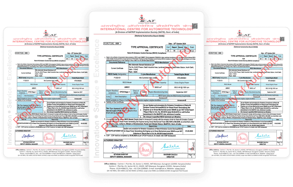 During audits by CPCB or State Pollution Control Boards, the absence of approved testing documentation can result in penalties, operational restrictions, or shutdown of DG operations. Compliance therefore requires not just installation, but verifiable proof of testing, approval, and proper deployment.