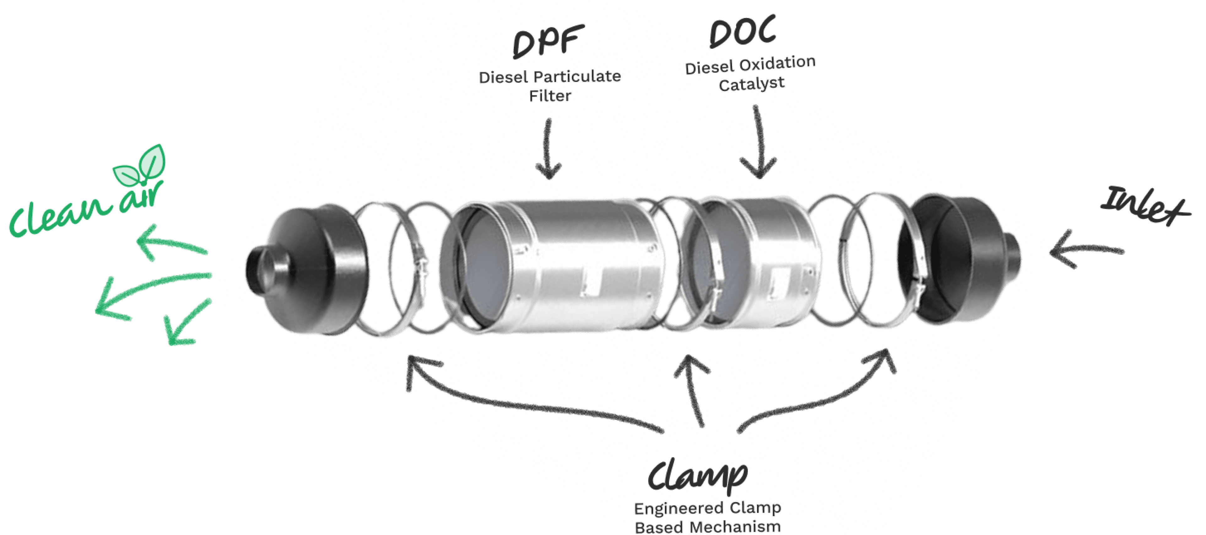 The DPF captures and filters up to 99% of particulate matter (PM) and soot, drastically reducing smoke emissions.